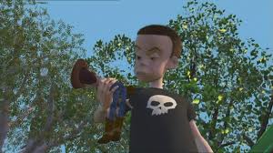 “I had these dolls and I’d want them to sit, but their legs were straight so I’d bend them to make them sit. And then they’d break. I had this doll that would cry, “Mama, mama, mama” and it wouldn’t stop. I’d tell it, “shut up, shut up,” and then stick the bottle in its mouth to make it be quiet. It made me feel really bad to see Toy Story One because I was so mean to my toys.”“Well, at least you used them,” I say. “You didn’t set them on fire like the kid in Toy Story One.”